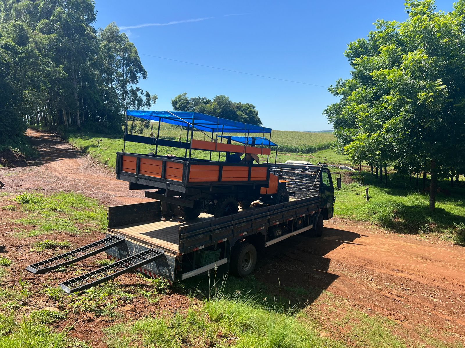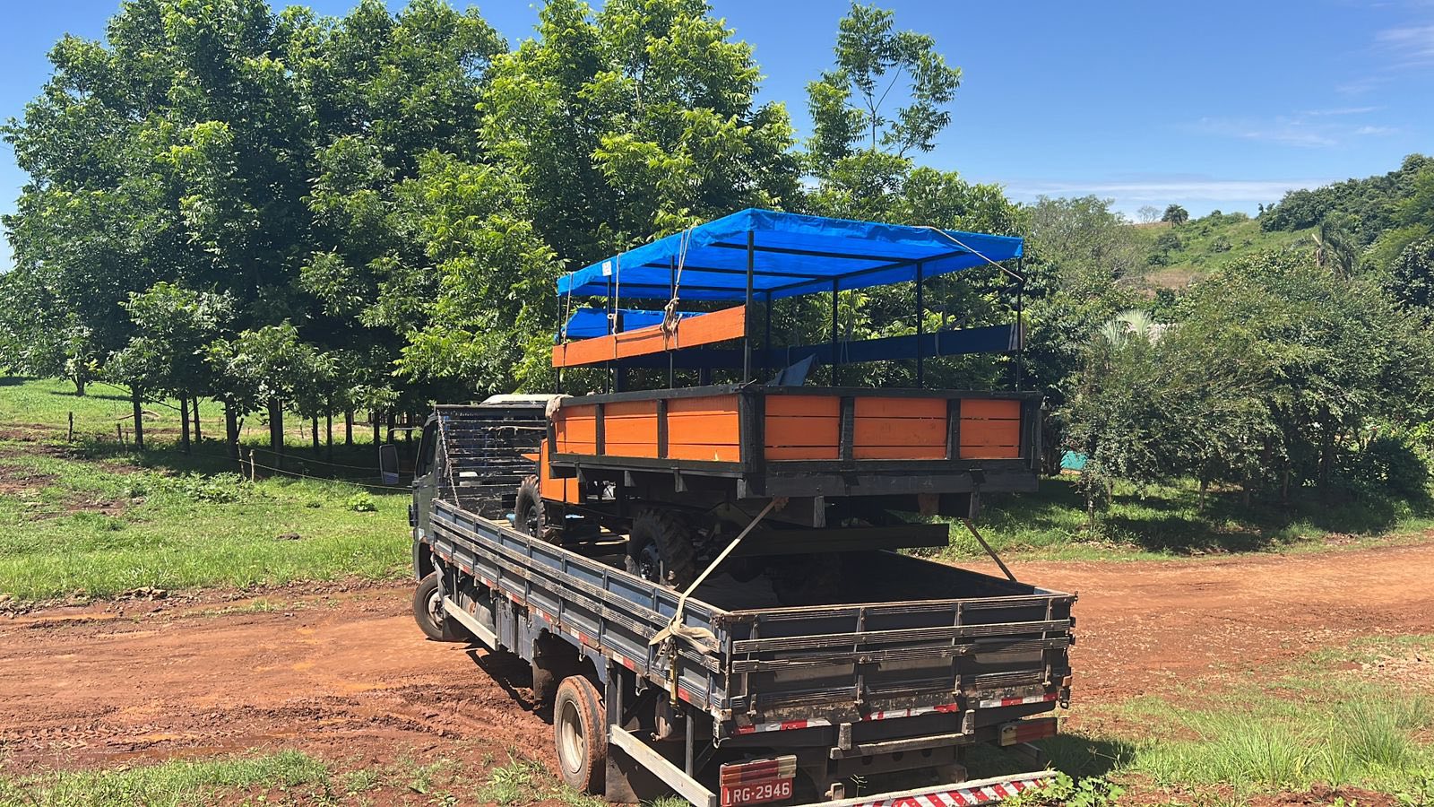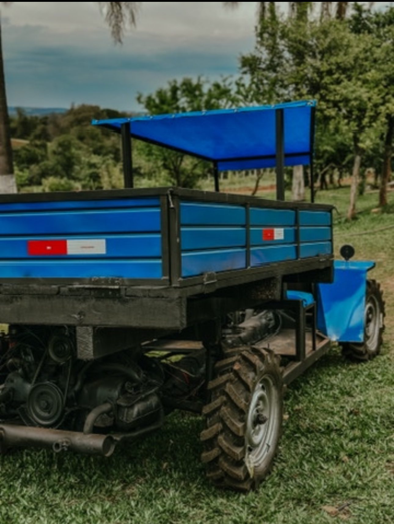 Carreta agrícola 4x2 fusca toldo em chapa e bancos individuais